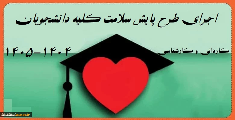 امتیاز دهید : اجرای طرح پایش سلامت کلیه دانشجویان ( ورودی قدیم و جدید) 2 چهارشنبه 16 مهر 1404 ساعت 9:43