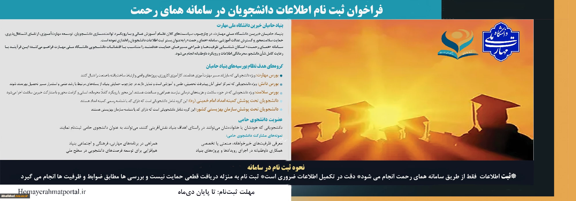 فراخوان ثبت اطلاعات دانشجویان در سامانه همای رحمت 2